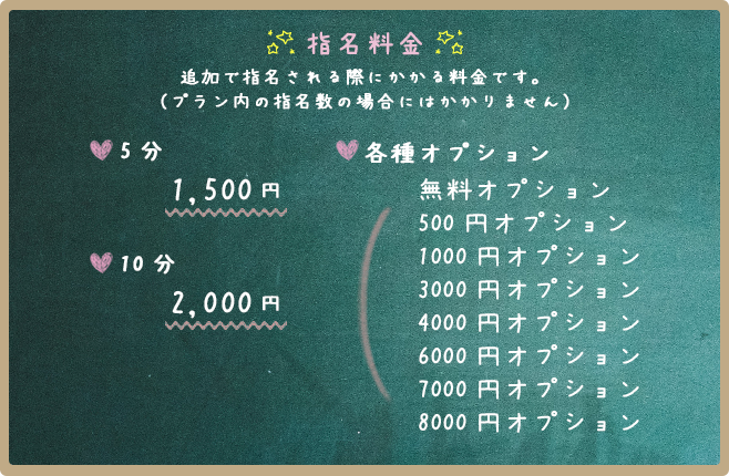 ※オプションは、指名のときに付けることができます。オプション単体でのご注文はできません。